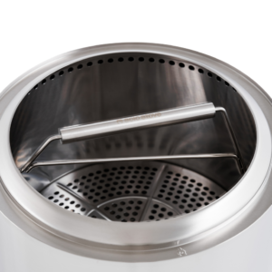 Et gjenkjennbart Solo Stove-produkt. Den rene, minimale, todelte gnistfangeren gir en ekstra grad av sikkerhet og trygghet. Den hjelper til med å forhindre gnister å sprute ut av bålpanna. Så det er trygt for barn og dyr å være rundt når du fyrer.