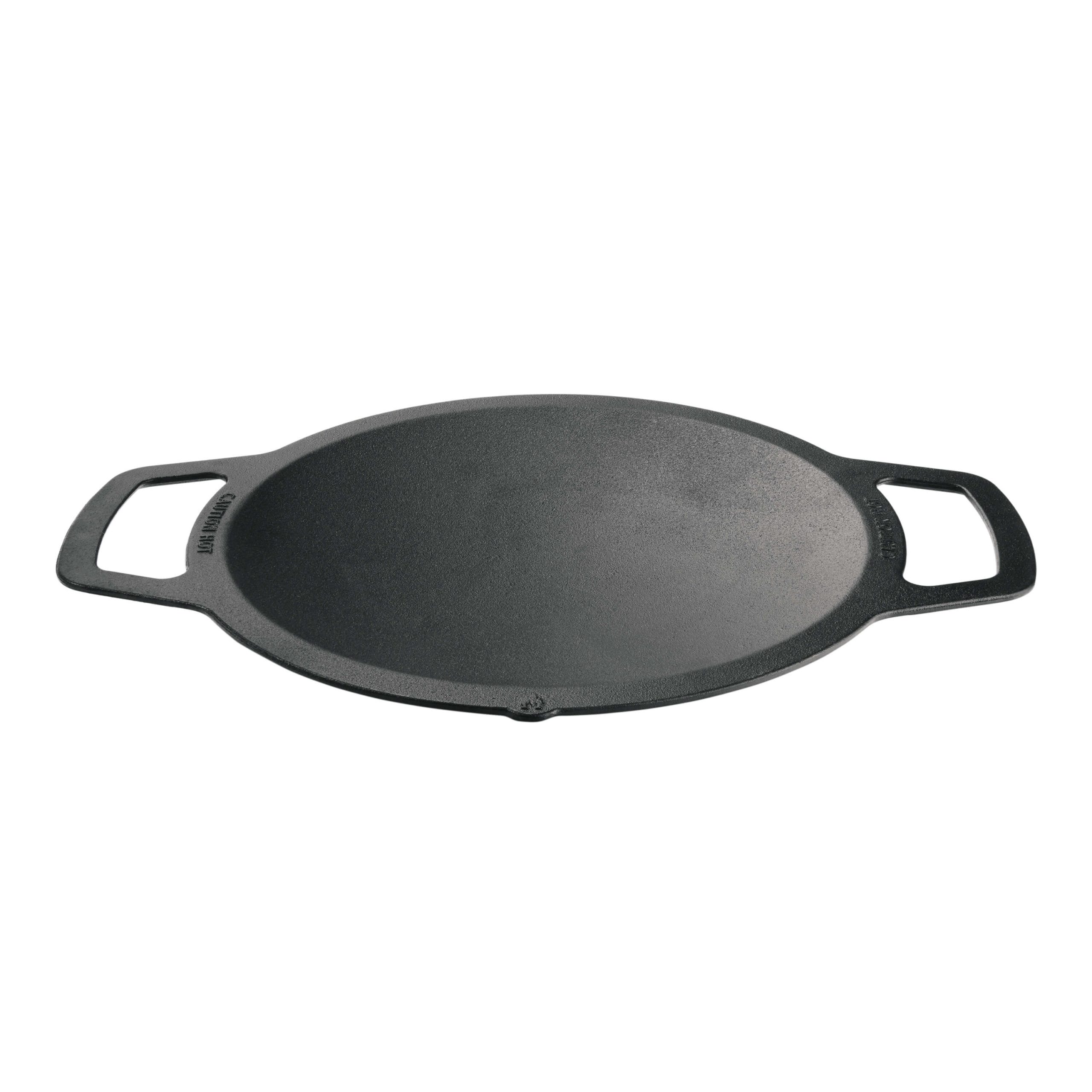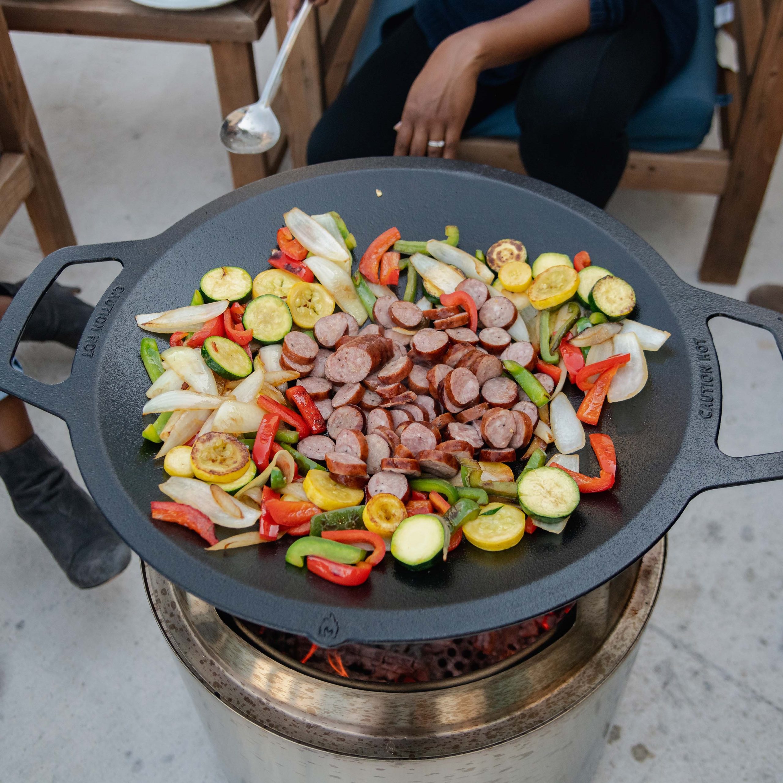 Støpejernsplaten gjør matlaging på åpen flamme en lek. Vent til flammene har roet seg litt før du begynner å steke