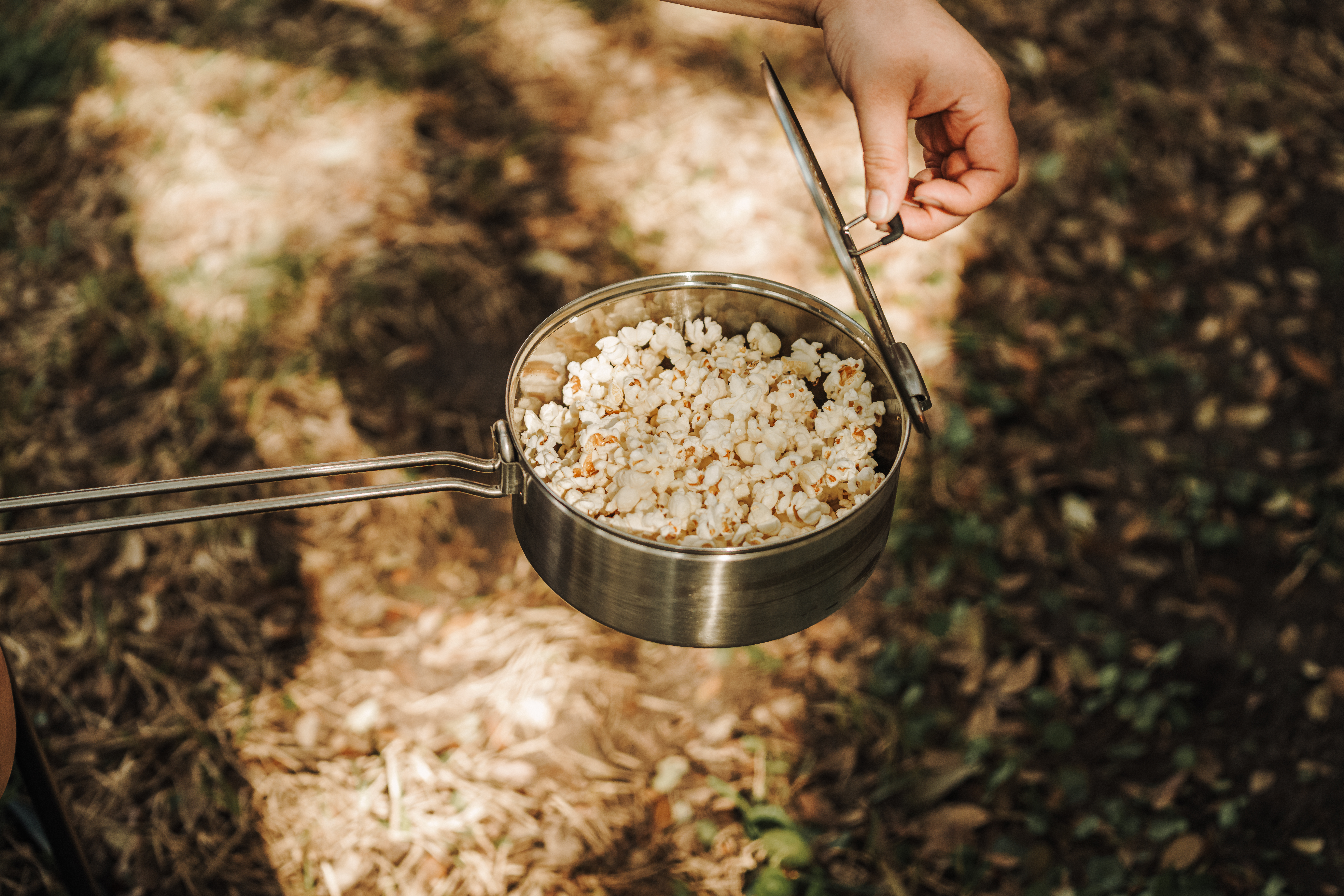 Fyr opp bålpannen din, la den brenne seg litt ned, hell olje og popkorn kjerner i kjelen og pop til det er ca 2 sekunder mellom hvert pop.