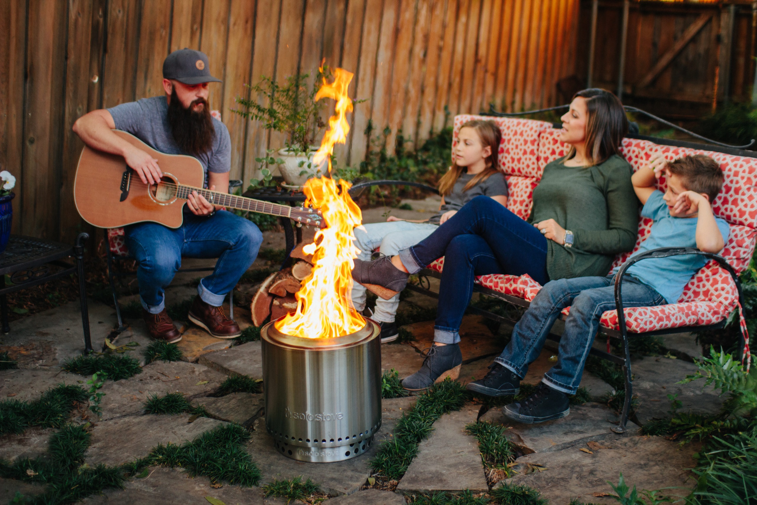 Et gjenkjennbart Solo Stove-produkt. Den rene, minimale, todelte gnistfangeren gir en ekstra grad av sikkerhet og trygghet. Den hjelper til med å forhindre gnister å sprute ut av bålpanna. Så det er trygt for barn og dyr å være rundt når du fyrer.