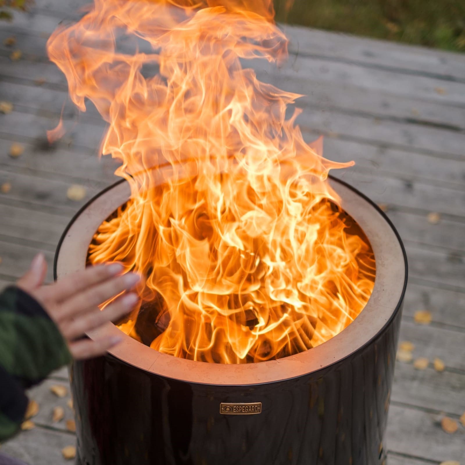 Et gjenkjennbart Solo Stove-produkt. Den rene, minimale, todelte gnistfangeren gir en ekstra grad av sikkerhet og trygghet. Den hjelper til med å forhindre gnister å sprute ut av bålpanna. Så det er trygt for barn og dyr å være rundt når du fyrer i din Bonfire.