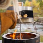 Den øvre delen av Bonfire Gnistfanger kan tas av, slik at du kan legge til mer ved i bålpanna uten å måtte fjerne hele gnistfangeren. Hakkene på kanten gir visuelle og fysiske retningslinjer som gjør den intuitiv og enkel å bruke, og hjelper deg med å holde grillpinnene på plass når du skal lage den perfekte bålmaten.