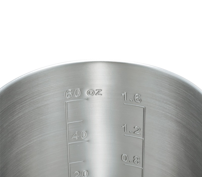 1x 1.8l kjele, enkelt lokk med gummi håndtak, dobbelt håndtak, volummerker ( oz og mL), håndtak til å henge opp kjele og svart nylon trekk