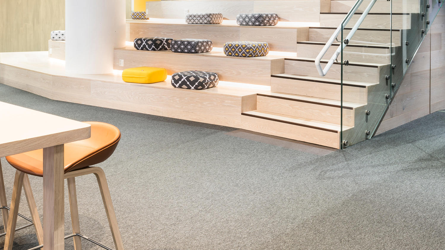 Gulvene er myke å gå på og reduserer støynivået.