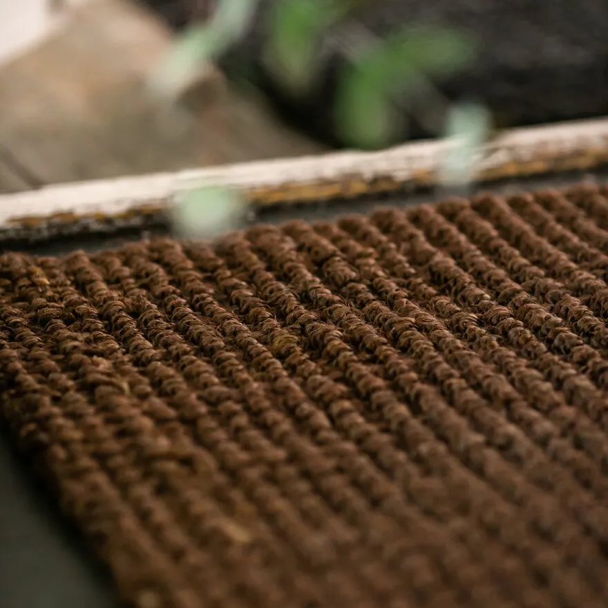 Dørmatten er laget i Jute som er en miljøvennlig naturprodukt og biologisk nedbrytbart.