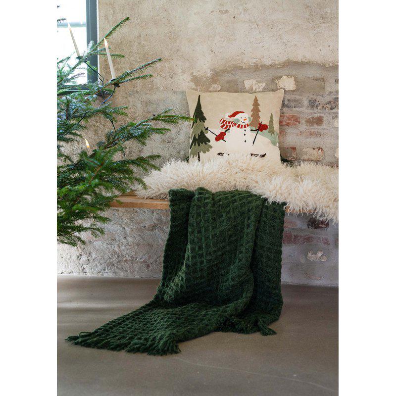 Pledd i en ullblandet og vaffelstruktur som gir pleddet en unik tekstur, ekstra fluffighet og volum.