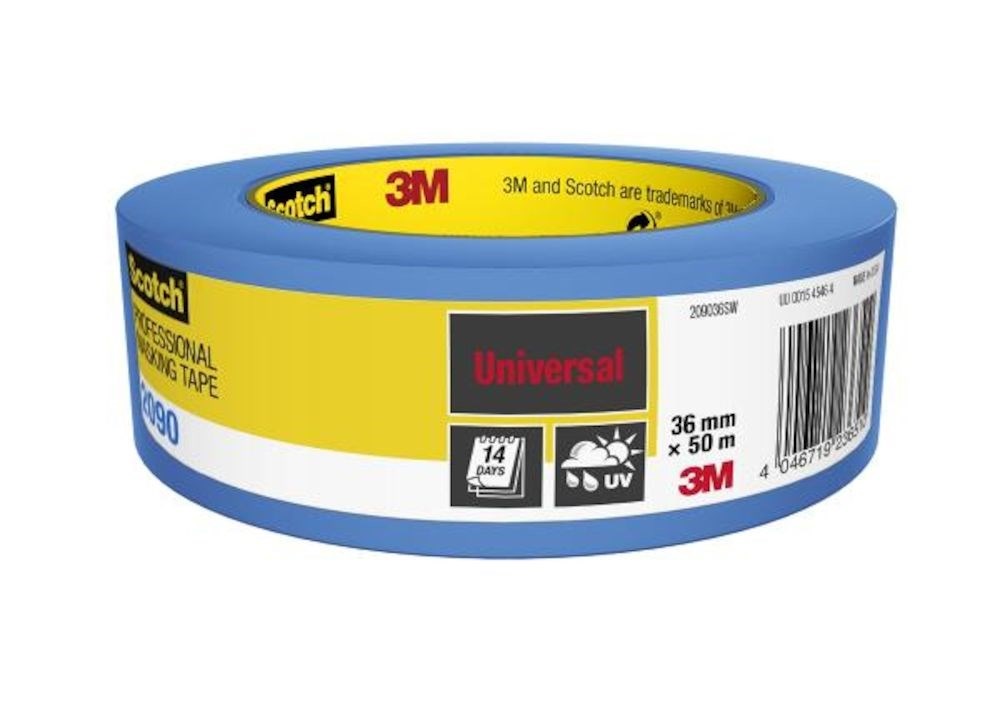 3M™ profesjonell maskeringstape 2090 er vår anvendelige tape for maskering av de fleste overflater. Den leveres i en rull på 36 mm x 50 m.