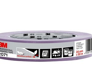 3M™ profesjonell maskeringstape 2071 er vår anvendelige tape til ømfintlige overflater som tapet eller nymalte vegger. Den kan brukes med både vann- og løsemiddelbasert maling, har en bredde på 24 mm og fås på 50 m rull.
