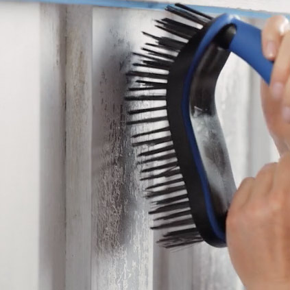 Stålbørste med flat tråd er effektiv og samtidig skånsom mot treverket. Den buede børsteflaten gjør børsten enkel å håndtere samtidig som den effektivt fjerner maling og løst treverk.