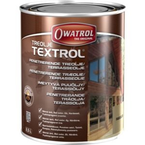 Textrol terrasseolje er en penetrerende treolje beregnet på å gjenopplive værtslitt og tørt treverk utendørs. Den benyttes på myke/trykkimpregnerete tresorter, og gjenoppretter treets naturlige farge og skjønnhet,