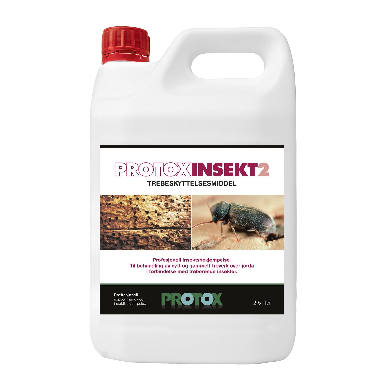 Profesjonelt middel til forebygging og bekjempelse av insekts angrep i bygningers treverk som taksperrer og bjelker. Protox insektmiddel kan også brukes til behandling av borebiller i gamle møbler.