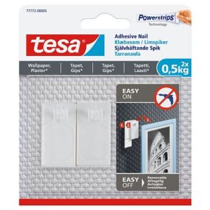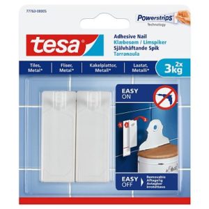 tesa® limspiker for fliser og metall og tilsvarende selvklebende strimler som følger med kan holde opptil 2 kg per spiker. De er spesialdesignet for å pålitelig holde pyntegjenstander og kjøkkenutstyr på glatte og faste innendørs overflater som fliser, de fleste metaller og plast. Enkelt og praktisk montering uten å skade overflaten og stresset forbundet med en hammer eller boremaskin. Den patenterte Powerstrips®-teknologien gjør det mulig å fjerne limspikeren i løpet av sekunder, og etterlater ingen spor på overflaten, og er gjenbrukbar med et nytt tesa® selvklebende strimmel.
