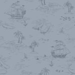 Treasure Island er designet av Newbies designstudio og den har en dempet tåkeblå bunn og mønster i mørkere blågrått.