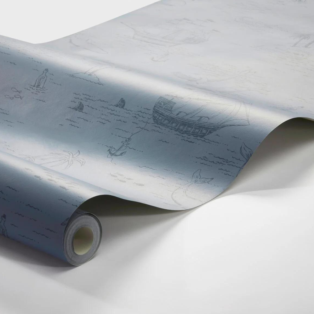 Og ser du flaskeposten? Et herlig tapet som tar med seg barnerommet på en magisk reise til havs.