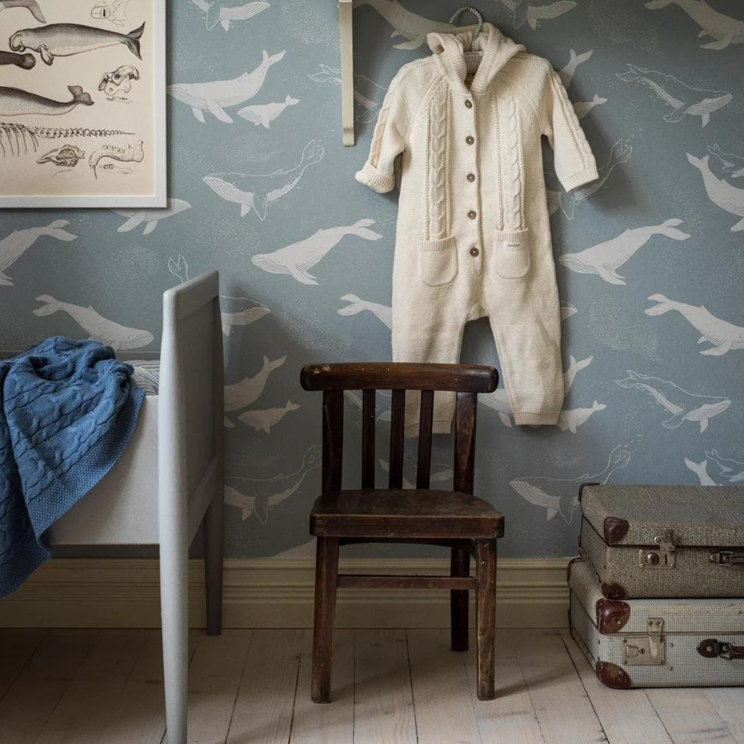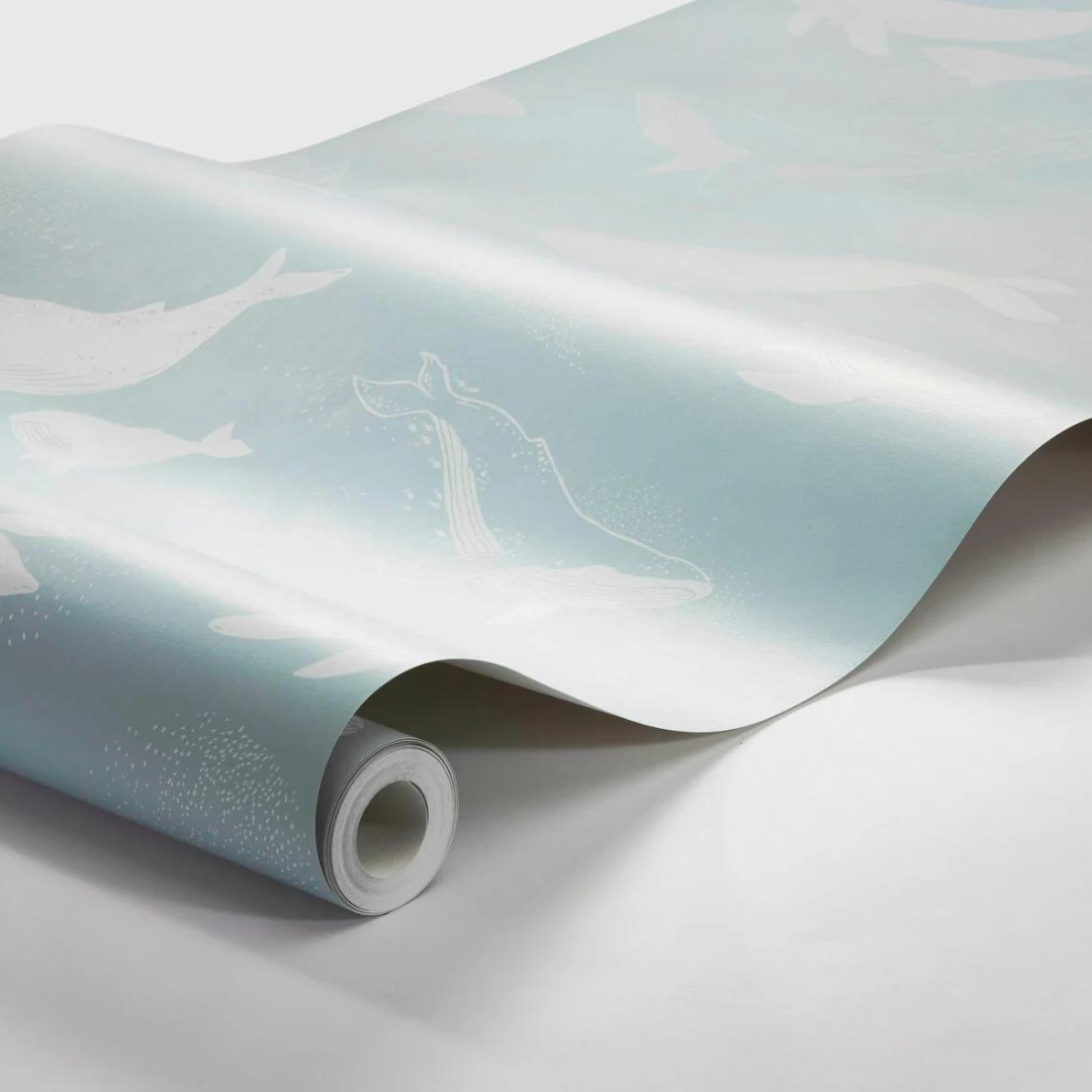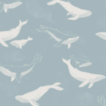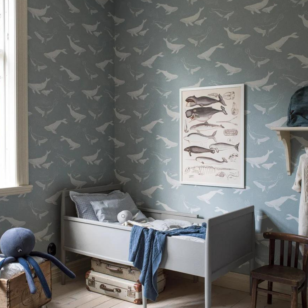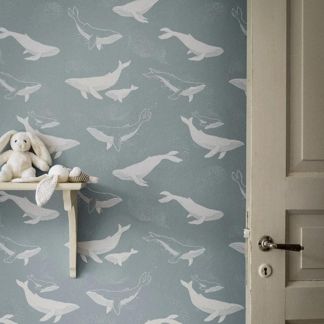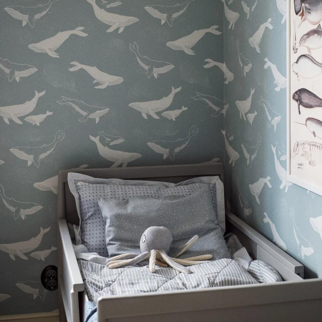 På barnetapetet Whales svømmer hele familien hval omkring blant småfisk og tette krillstimer.