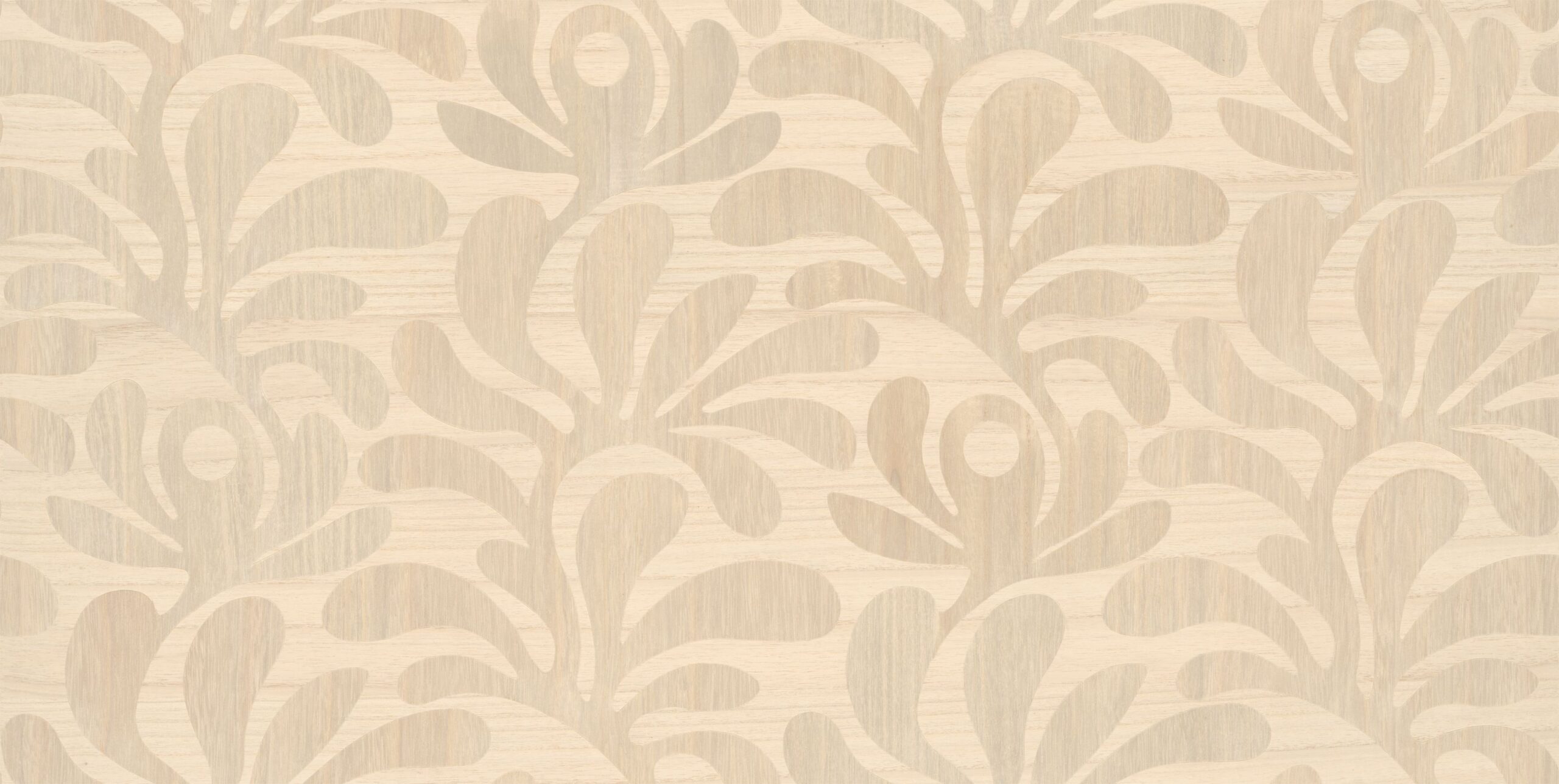 Designet er monofarget og omtenksomt arrangert i to retninger, og skaper en subtil blanding av nyanser som minner om den klassiske intarsiakunsten.
