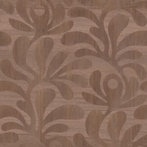 Designet er monofarget og omtenksomt arrangert i to retninger, og skaper en subtil blanding av nyanser som minner om den klassiske intarsiakunsten.