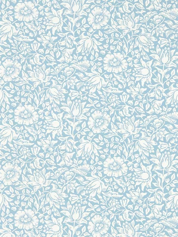 Lekkert tapet fra designeren William Morris med rolig blomstermønster i duse blåfarger.