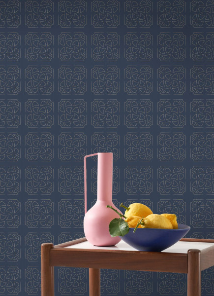 Et glimt av Frankrike i dette tapetet fra Casadeco med et snev av ornamentmønster som har sin inspirasjon fra blant annet franske flisegulv.