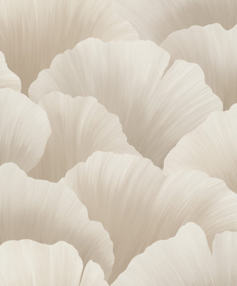 Her ser du det fine tapetet Lily Swan med detaljer i lyserosa og brunt på varmhvit bunn.