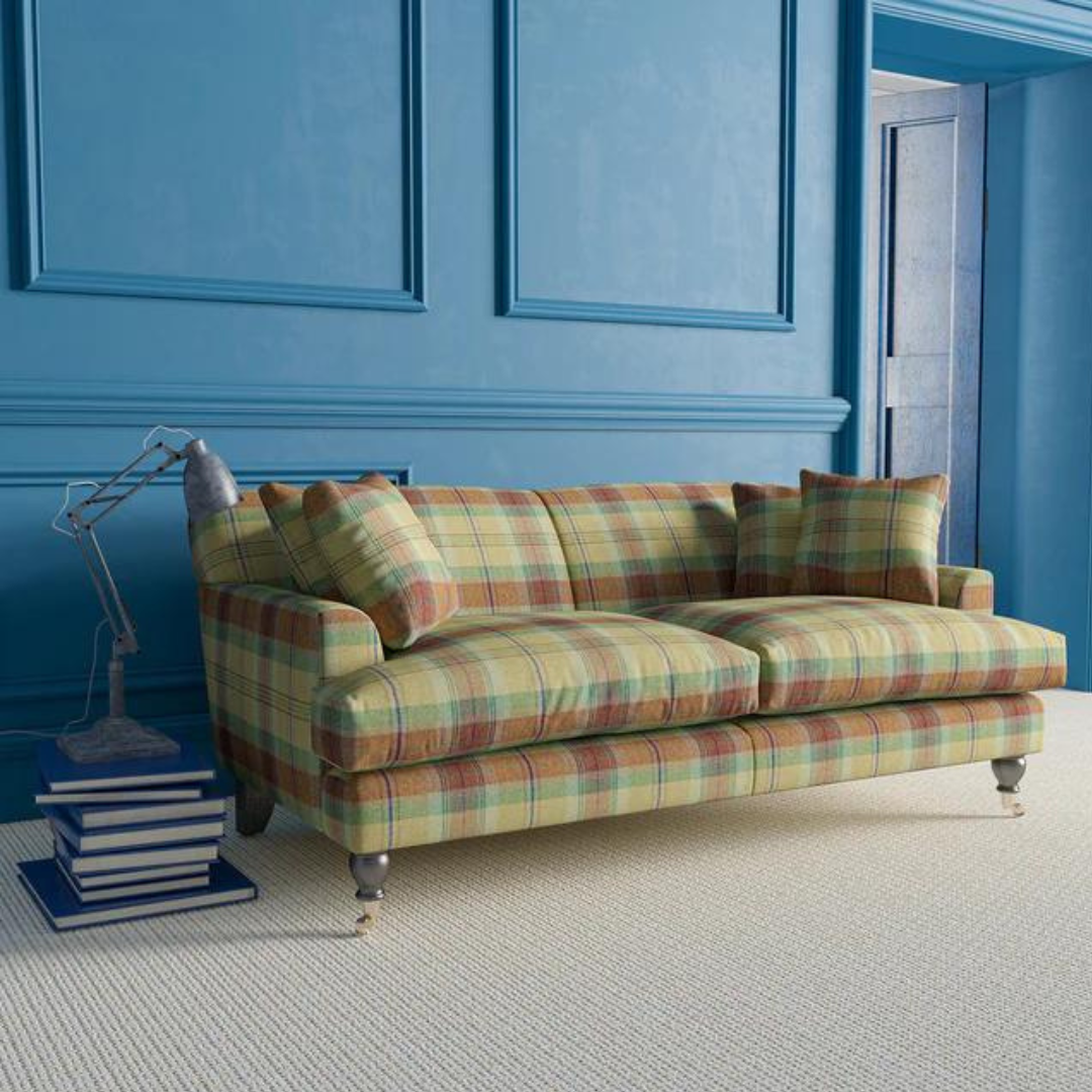 Nydelig lunt tekstil i tradisjonelt sjakkrutemønster vevd i 100% ull fra leverandøren Linwood.