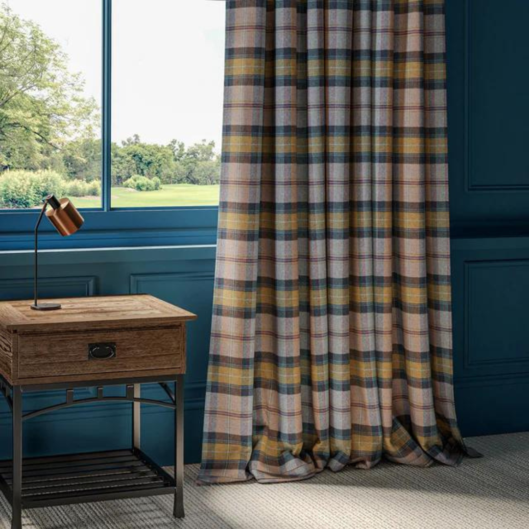 Nydelig lunt tekstil i tradisjonelt sjakkrutemønster vevd i 100% ull fra leverandøren Linwood.