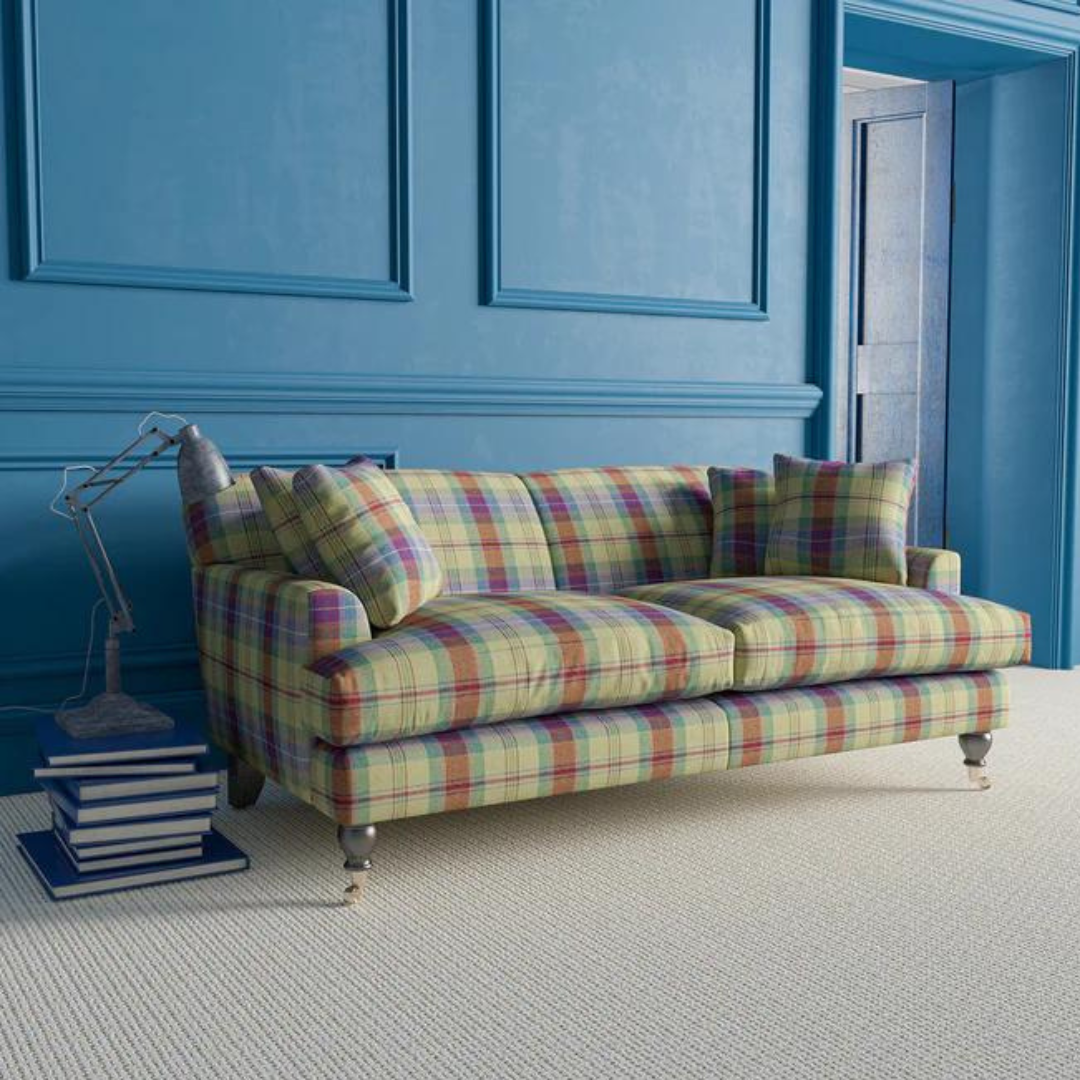 Nydelig lunt tekstil i tradisjonelt sjakkrutemønster vevd i 100% ull fra leverandøren Linwood.