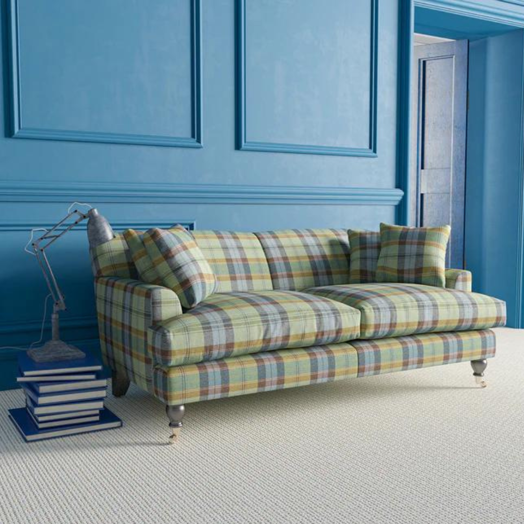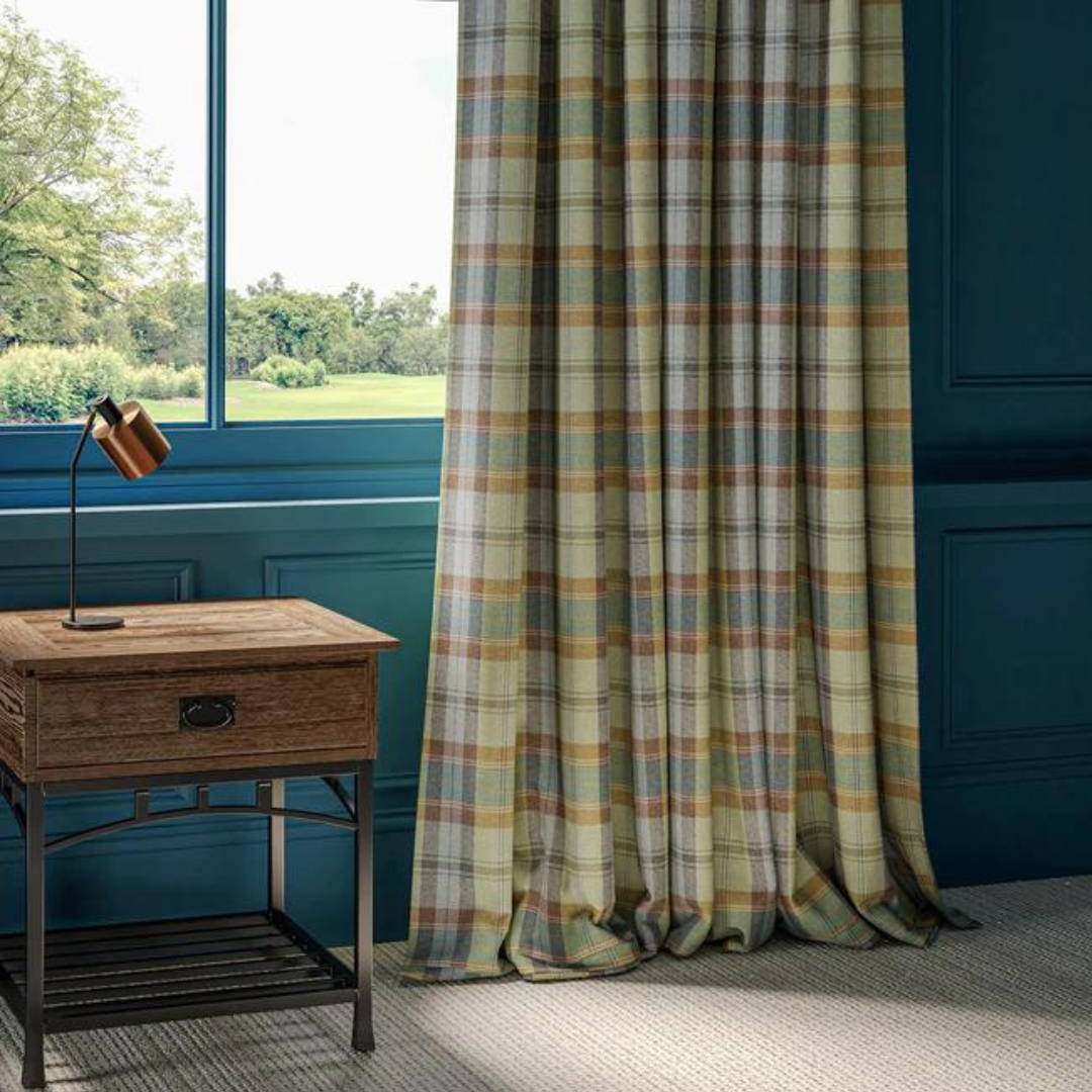Nydelig lunt tekstil i tradisjonelt sjakkrutemønster vevd i 100% ull fra leverandøren Linwood.