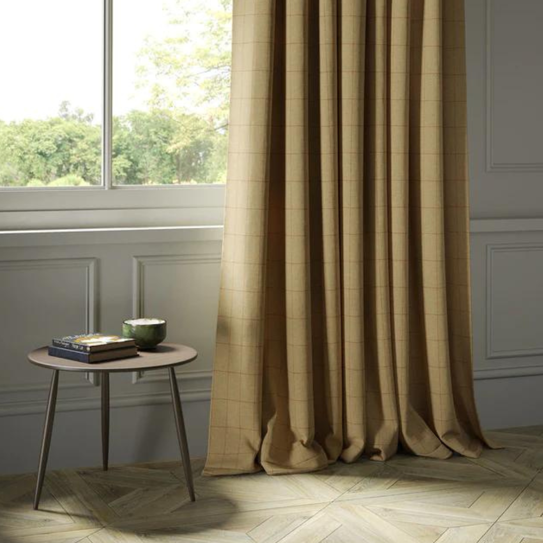 Nydelig lunt tekstil i rutemønster med en komplementærfarge på ensfarget bakgrunn.