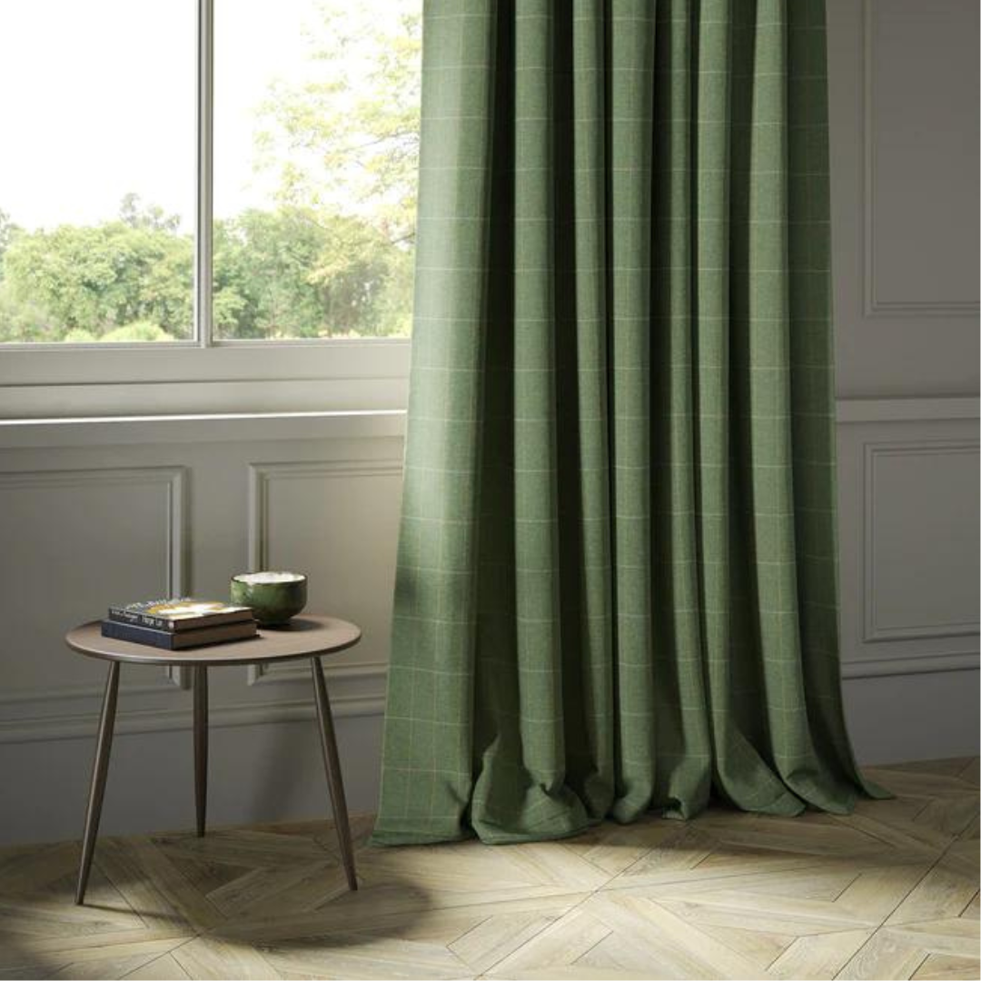 Nydelig lunt tekstil i rutemønster med en komplementærfarge på ensfarget bakgrunn.