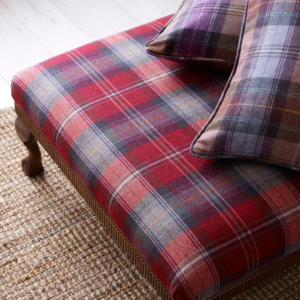 Nydelig lunt tekstil i tradisjonelt sjakkrutemønster vevd i 100% ull fra leverandøren Linwood.