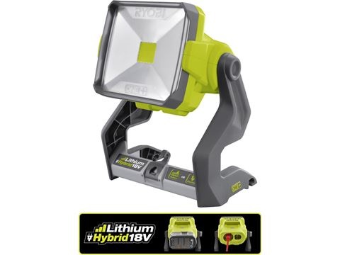 Ryobi R18ALH-0 arbeidsbelysning som er hybrid. Fungerer like godt med batteri som med ledning. Høyeffektiv 20W LED lampe som avgir 1800 Lumen lysstyrke. Arbeidslampen kan både foldes, henges eller stilles, noe som gir mulighet for bruk nesten hvor som helst med begge hender frie i et opplyst miljø. En del av ONE+ serien – ett batteri som er kompatibel med alle Ryobi 18V-serien hage og elverktøy. Leveres uten batteri og lader.
